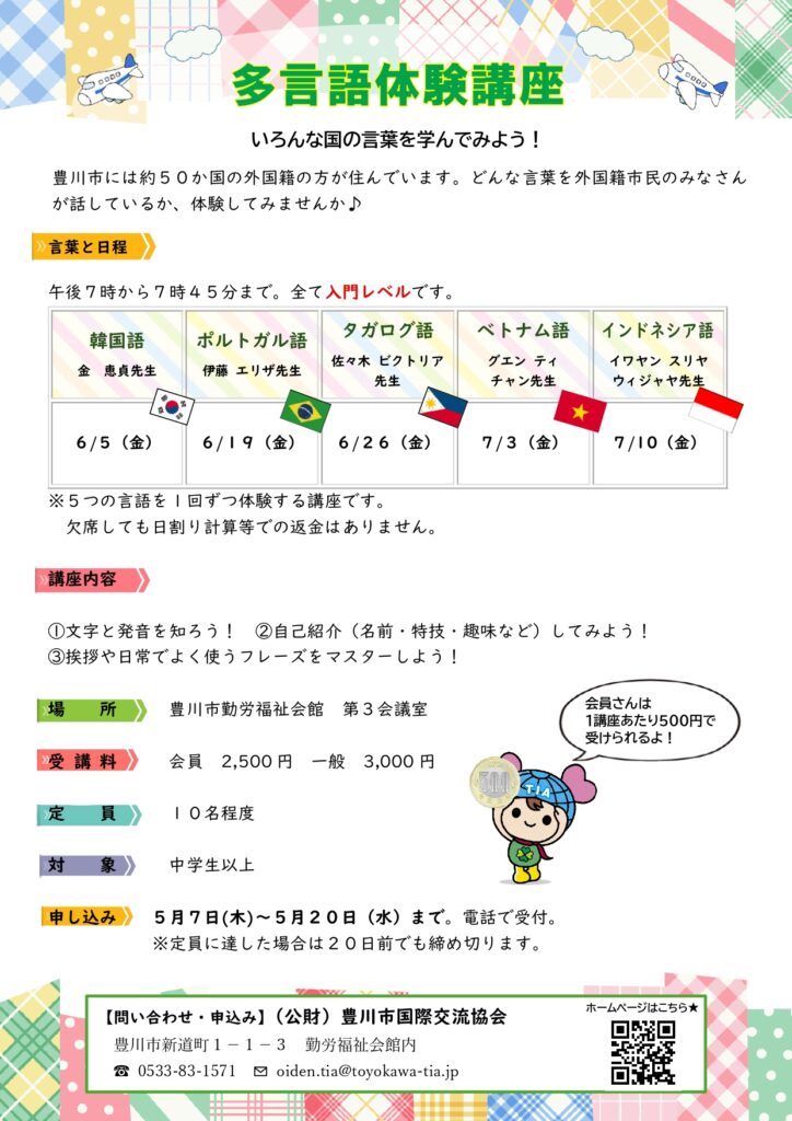 豊川市には約50か国の外国籍の方が住んでいます。どんな言葉を外国籍市民のみなさんが話しているか、体験してみませんか♪
